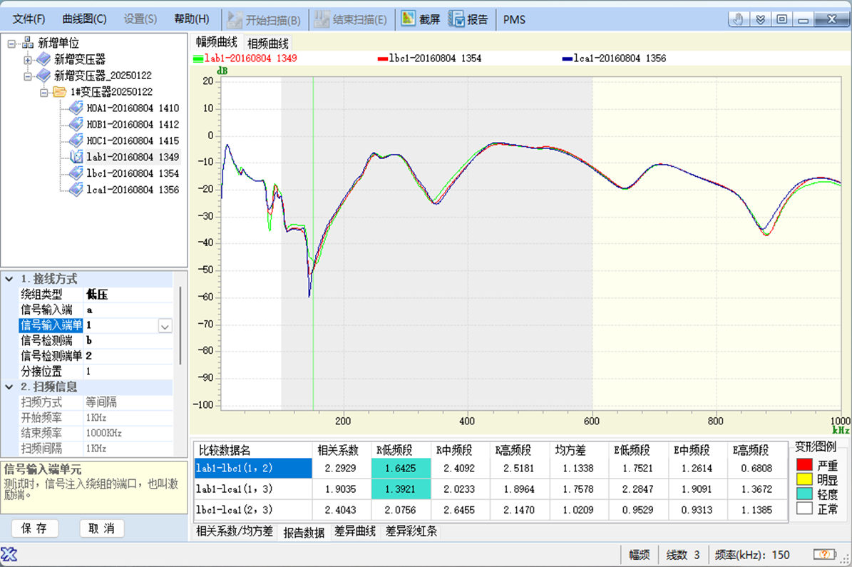 仪器具备多种参量的曲线图谱表达方式,包括幅频响应曲线、差异曲线等。